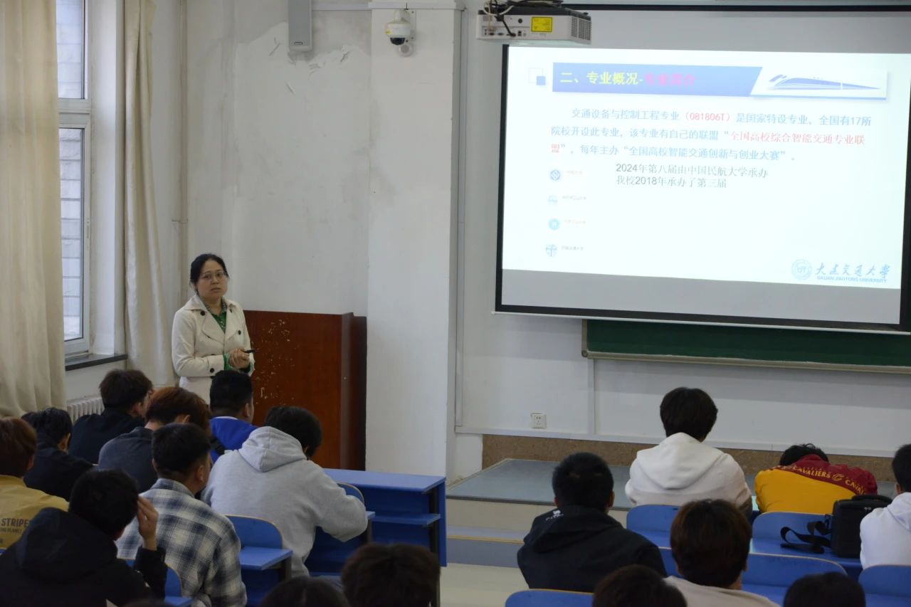 在旅顺校区文体中心礼堂及教学楼部分教室,举办了“专业认知 梦想启航”入学教育活动。詹天佑学院副院长张彤、车辆工程系主任齐鲲鹏、测控技术与仪器系主任曾祥浩、交通设备与控制工程系主任孙燕楠、智能制造工程系主任李娅娜及詹天佑学院2024级全体新生参加活动。